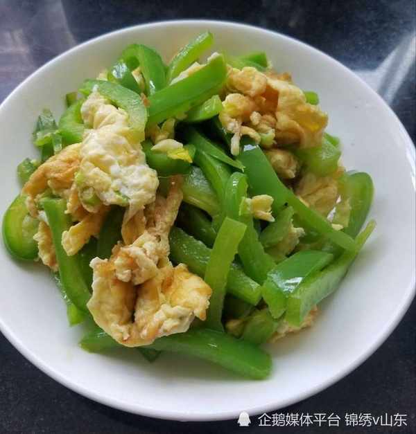 【材料】青椒1个,鸡蛋2个,葱姜,生抽,盐,玉米油
