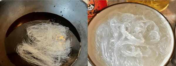 第二步:菠菜把根和多余的叶子捏掉,粉丝放入热水中,烧开一小锅热水,将粉丝煮熟,备用。