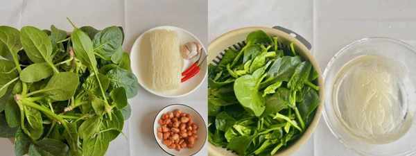烹饪技巧:选择菠菜、粉条和花生。花生一定要提前炒熟,菠菜要提前焯水。麻辣菠菜花生拌粉条的技巧比较容易掌握。