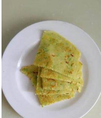 锅里放一点油就够了,两面煎好盛出来,晾凉切块