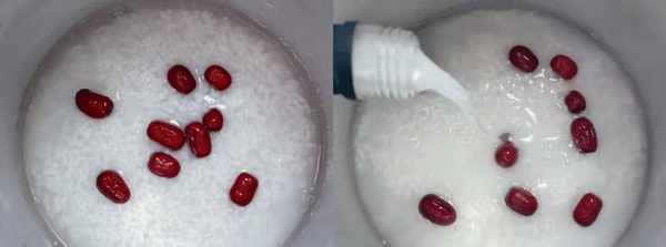 第四:锅内放枸杞点缀,适量加入红糖融化,用淀粉勾芡,汤汁很浓,有浓浓的米香。
