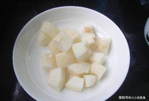 第三步:梨全部去核,切成几块待用,红枣全部洗净,红枣去核,几种水果处理好,开始做金桔、雪梨、红枣、枸杞糖浆。