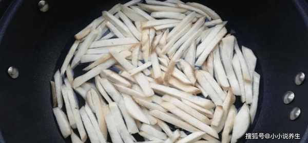 第二步:杏鲍菇锉一定要煮熟。记得在冷水下煮。杏鲍菇不宜煮太久。加入盐和食用油,将杏干焯水后浸入冷水中。切碎的平菇是湿的。