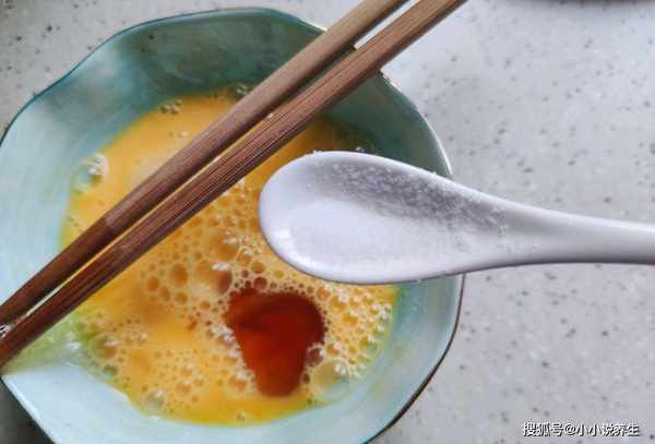 第三步:将鸡蛋打入碗中,加入一勺半清水,加入少许料酒,加少许盐调味,加入胡椒粉快速拌匀,提前准备好蛋液。