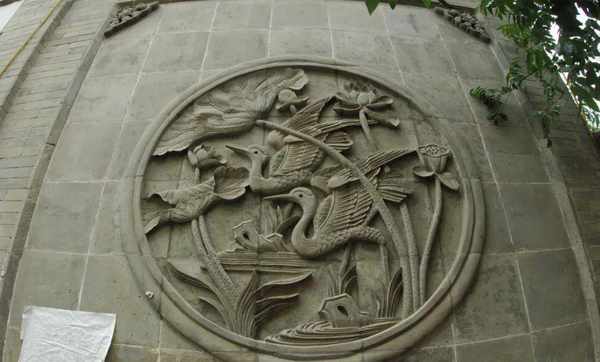 天水山陕会馆中最值得称道的就是陕省会馆的砖雕门楼。这个砖雕门楼是民国13年(1924年)由关中工匠雕造。门楼通体以雕砖、磨砖拼砌而成。门楼的主体建筑有门楼、戏楼、大殿等。现存砖雕门楼保存完整,面阔3间,4柱5楼,长22—23米。中门、次间均开券洞。正面砌砖雕镂梁柱斗拱,平座勾栏,垂花檐楼、各式额枋花板,构成几层仿木结构的楼阁。构件上雕刻珍禽异兽、花草虫鱼、人物故事等。四柱旁侧镌刻楹联,内联:“义勇冠尘寰,当年摧吴挫魏,丹心耿耿绵汉祚;庙貌重关陇,群生蒙庥托庇,馨香世代报神恩”。外联:“忠义参天出于至性,宫墙数仞仰之弥高。”对联的内容无疑写的是武圣关羽,陕省会馆的对联写了山西的关羽。从它的背后折射出晋陕商人在西北携手共进的往事。