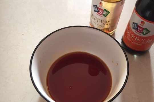 8.碗中加入味達美清香米醋和味達美尚品金標生抽