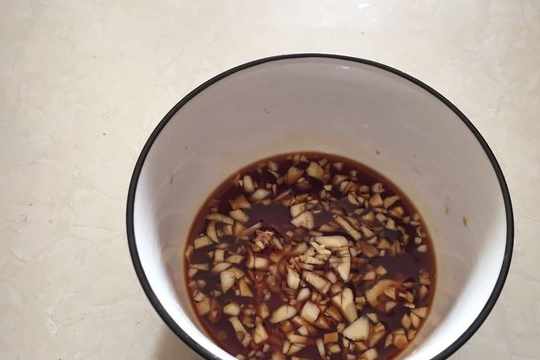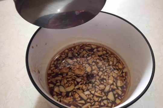 10.鍋內加油和花椒炸至冒煙,把花椒油澆在料汁上拌勻