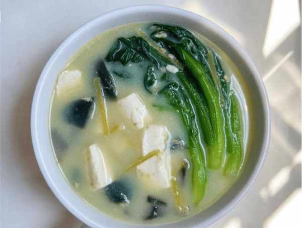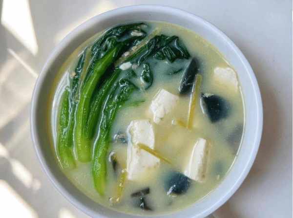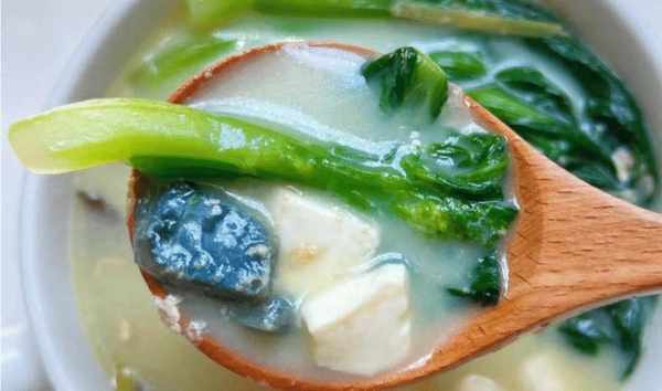 Tips:财新药明豆腐汤是一道低脂又营养的鲜汤。药明添加了碱性物质。直接吃很涩。你可以用热水烫它。切成几小块。建议在这道汤里加入热油和姜片,加入药明鼎稍微翻炒,加入几碗开水烧开,加入一些软豆腐,最后加入菜心,继续煮。片刻,上桌前,加入一些调味料,淋上香油,关火,起锅。你吃过这道菜心皮蛋豆腐汤吗?(所有图片均来自网络)