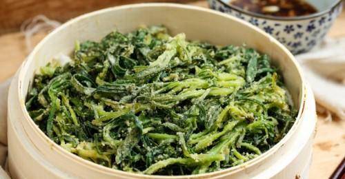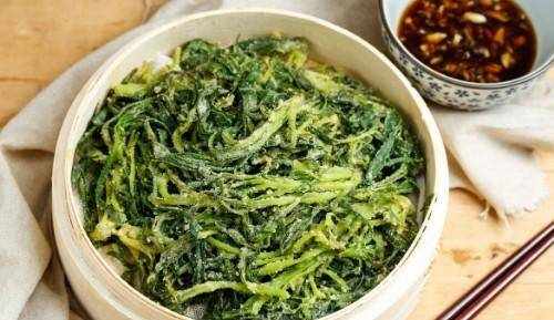第四步:蒸好的面菜不要再炖,面菜要趁热吃,蒸出来的面菜要快出锅。