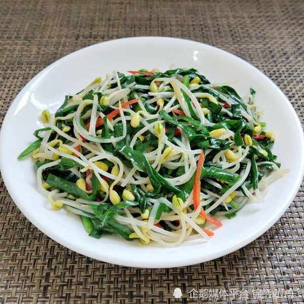 豆芽250克、韭菜200克、蒜米3粒、食盐一勺。