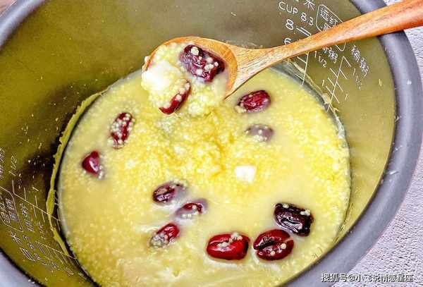 第六步:小米粥煮好后很稀,过一段时间后逐渐变稠。让小米泥在室温下静置。这道香喷喷、营养丰富的红枣鲜小米粥就做好了。