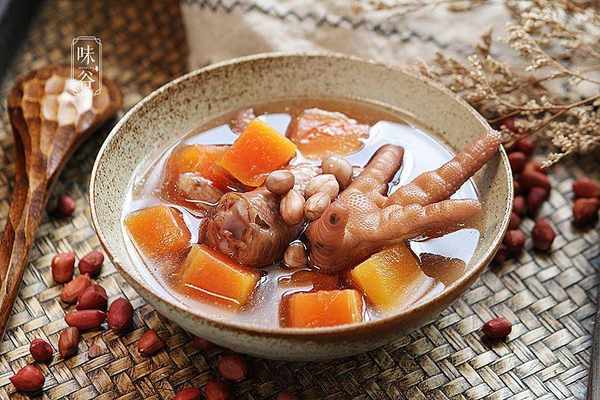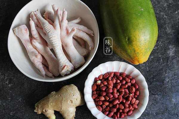 【食材】:鸡脚 8只、生姜 2片、木瓜 1个、红皮花生 45克、料酒 1勺、盐 适量