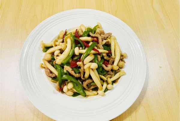 青椒白玉菇烧腊肉是一道营养美味的家常菜。白玉菇鲜味十足,比海鲜还鲜美。可与瘦肉、荤素搭配食用,营养更均衡。多吃不会让你累,还会改善你的家。人的胃口。白玉菇中含有多种氨基酸和卵磷脂,能有效滋补强身,提高智力,增强各项机能。赶快为家里的孩子们做好这顿饭吧。