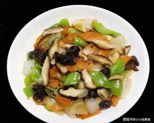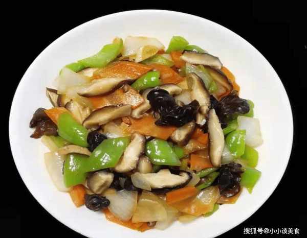 烹饪秘诀:蘑菇炒青椒、洋葱和蘑菇是一道素菜。几个鲜嫩的香菇一定要洗干净。先把蘑菇洗干净。事先将黑蘑菇浸泡软化。香菇和黑木耳一定要烫一下。胡萝卜一定要去皮切成菱形块,用热水烫一下切几根备用。这道菜一定要先用猪油、葱、姜、蒜炒熟,然后加入一些香菇、胡萝卜和辅料,快速翻炒至入味,加入一些香料,翻炒均匀后出锅。