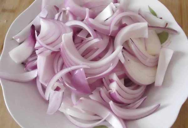 准备食材:准备优质虾300克(虾肉要厚实,大小适中,壳色透明,这样虾才新鲜无污染),买紫洋葱一个。调料.