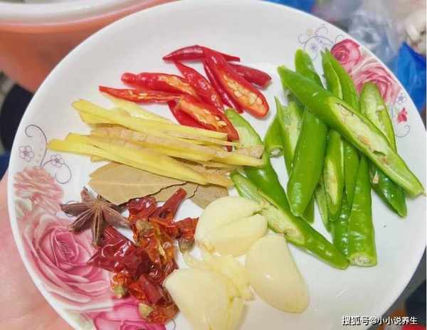 第四步:将一些调料洗净备用,小米椒和青椒切小块,干辣椒切小块,准备一些小菜,开始做这道香辣夹竹桃。