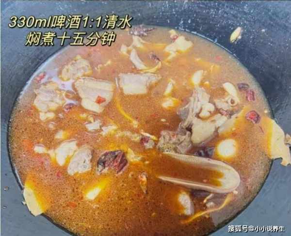 第七步:加入适量的水,加入一大罐啤酒,盖上锅盖小火炖一会,大概15分钟左右,切记不要炖太久。