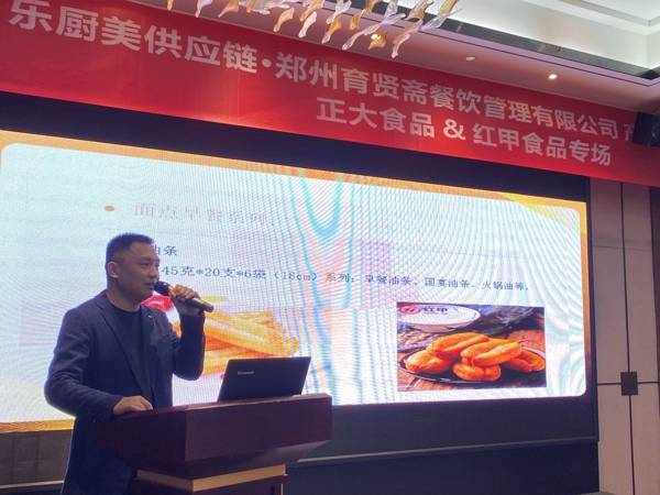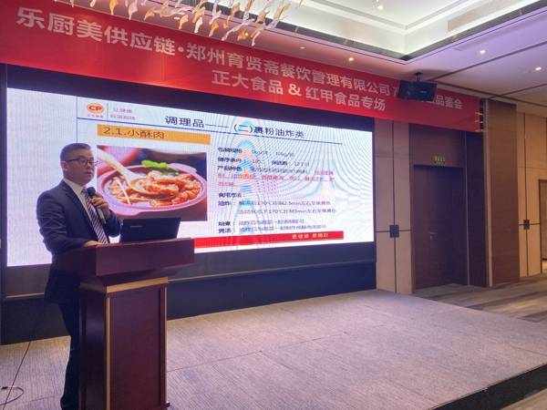 活动中,乐厨美央厨(河南)供应链科技有限公司、正大卜蜂食品(河南)有限公司、河南红甲食品有限公司代表分别上台做产品宣讲。