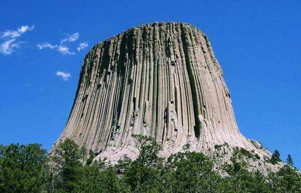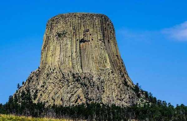 山形似倒置的果冻,海拔264米。恶魔之塔曾经是一座火山,但是围绕着火山的一圈却经历了很长一段时间。后来被侵蚀,只剩下200多米的火山颈,但即便如此,它依然是这片平原的最高点。每当天气晴好,人们便可远行数百里。看这里。是美国著名的风景区。