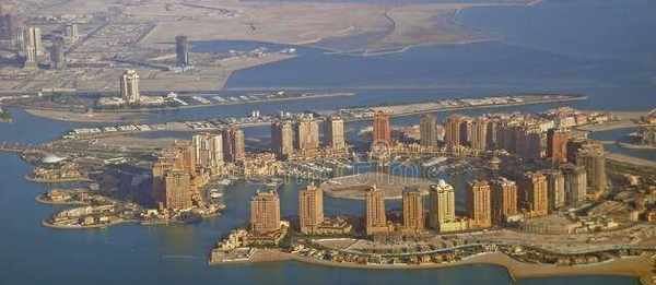 上空可看到卡塔尔明珠的景色,卡塔尔明珠位于西湾海岸外的人工岛,岛上有各种配套设施如地中海时尚的游艇码头,豪华酒店,奢侈品牌的专卖店。而多哈还具有各类市场,大道中部有一座名叫贝达公园的较大街心公园。依傍埃米尔宫建设的各类政府机构。