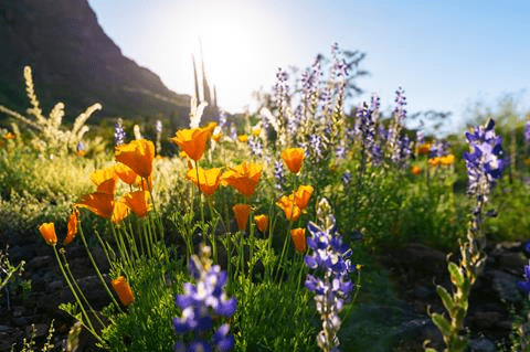 数月连绵的雨水天气之后,亚利桑那各州立公园迎来了美妙的野花季。以野花景观见长的州立公园包括皮卡乔峰、卡特琳娜、失落的荷兰人、阿拉莫湖和香蒲湾州立公园。而到了五月,在像甲骨文和红岩州立公园这类的高海拔公园,野花也将盛开。在徒步旅行和露营的过程中,我们将有幸目睹遍地野花,橙色、紫色、黄色、红色……美不胜收。