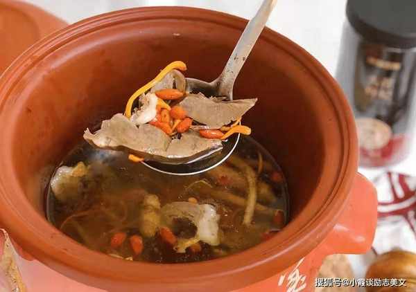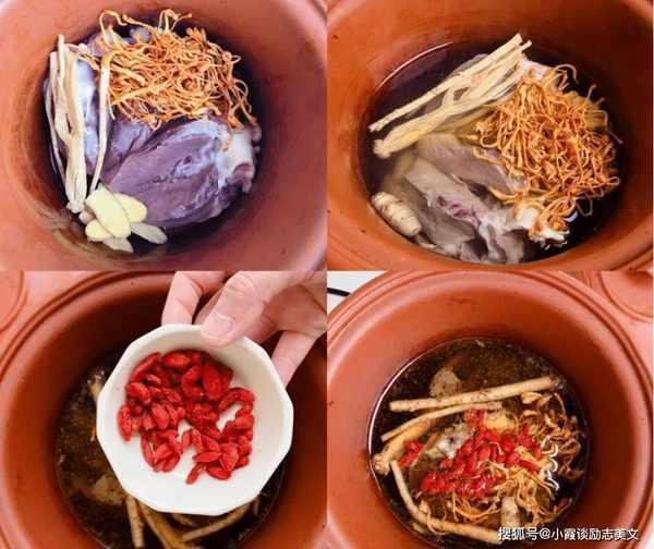 第四步:中间可以加点开水,枸杞先大火煲一个小时,转小火文火炖30分钟,加入适量枸杞,枸杞不要放得太早,这样就成了确保营养价值不流失。