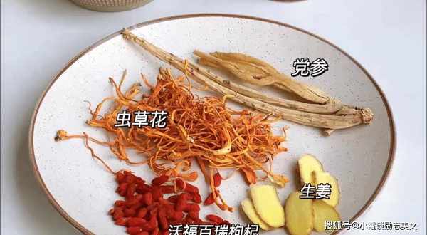 原料:买新鲜猪心350克,党参约12克,大姜,盐8克,料酒少许,葱适量,水适量,枸杞子10克,约80克。虫草花,水够,温水几碗,花椒少许,其他调料。