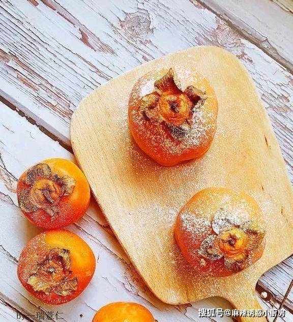 “柿子要挑软的捏”。做柿子饼选用的柿子也要挑软的,熟透了的,甜的。火晶柿子是个比较好的选择,比较甜而且里面有水晶芯。剥开皮后一瓣一瓣的火晶芯,很漂亮。果肉取出。果肉用筷子搅匀后加与柿子差不多等量的面粉,再用筷子搅拌。觉得面少了再加面,也不要加太多,多了就不太甜了,柿饼也比较硬。差不多这个样子。盖上保鲜膜或者布醒半个小时左右。准备俩小碗盛少量食用油和芝麻双手涂层油开始拍柿饼很很粘手。稍微拍一下差不多圆形就好了。上面粘一层芝麻。平底锅多加一些油(油能铺满锅底)。烧78层热放柿饼。因为面比较粘手,柿饼下锅后用手再按按形状,好看一点。其实这个不追求形状也可以直接炸,就是比较油。中火煎至两面金黄。放厨房用纸上吸油。里面的火晶很漂亮很好吃。香甜软糯可口。趁热吃凉了吃都好吃。【吊柿】DIY晒柿饼