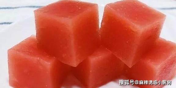 食材明细在淀粉中加入30克清水,搅匀备用,西红杮去皮切小块将西红柿块放入破壁机内,搅打细腻Tips:料理机、辅食机都可以哈,只要能把食材处理细腻就可以了搅打好的番茄汁倒入锅中,再加入水淀粉、冰糖Tips:冰糖也可以用细砂糖代替,糖量可以根据宝宝的口味适当增减开中火,用铲子不断搅拌,熬至粘稠状态Tips:要不断翻炒,很容易粘锅容器刷油,底部铺一层油纸防粘,将番茄汁倒入模具内,表面抹平盖上保鲜膜,放入冰箱冷藏2小时左右,这是冷藏之后的Tips:介意的冷藏的麻麻,可以放蒸锅蒸5分钟,然后常温放置冷却也可以成型脱模,切成小块,超级Q弹Tips:小宝宝的肠胃功能并不完善,所以吃的时候一定要适量,不可食用太多