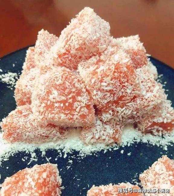 西红柿烫水去皮切小块放入榨汁机中榨成汁(不用加水)倒入20g淀粉,搅拌均匀加入2、3颗冰糖,可根据自己口味增减开小火不停搅拌煮至粘稠,膜具刷油倒入膜具,刮平盖上保鲜膜、放入冰箱冷藏1h出膜切型拌上一层椰粉酸甜开胃的柿子糕柿子饼