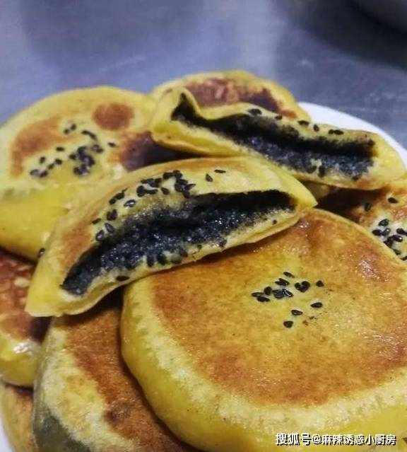 炒核桃仁,核桃仁快熟时加入黑芝麻打粉时加入适量白糖,打成粉,炒锅加油,放入黑芝麻油一点点加成团即可,面粉柿子柿子去皮和成面团馅料分割,包成饼平底锅放少量油开始煎饼,软糯香甜开吃柿子饼