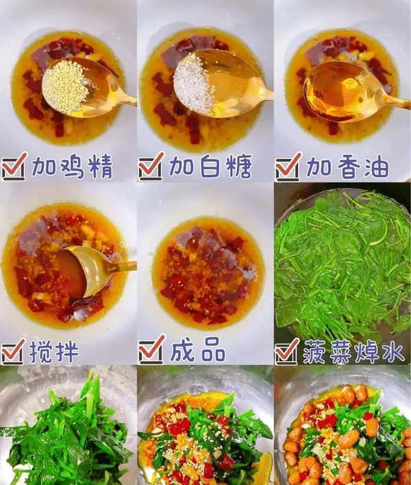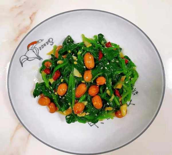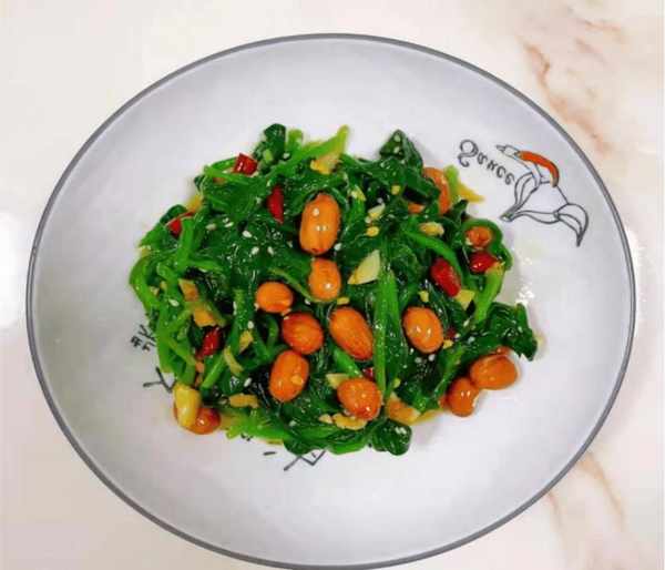 带籽菠菜是一种家常的充饥食品。我的妻子真的很喜欢它。这道菜辛辣可口。花生最甜,菠菜清爽可口。它有助于增加食欲。春天千万不要错过这道菜。