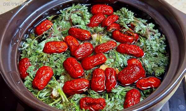 1.挖回家的茵陈去掉根部,放在淡盐水内,浸泡30分钟,然后清洗干净,沥干水分,准备十几颗红枣,清洗干净后,对半切开,将枣核取出,取一把枸杞,清洗干净,沥干水分。