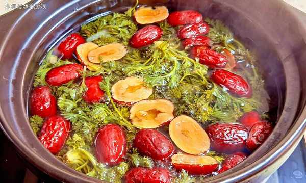 2.取一个砂锅,在砂锅内加入适量的清水,将茵陈和红枣放入锅中,放入黄冰糖,盖上锅盖,开大火煮,煮开以后,调为小火,煮20分钟。