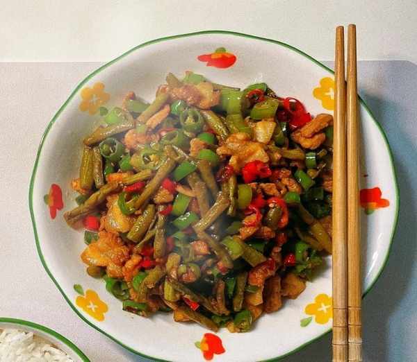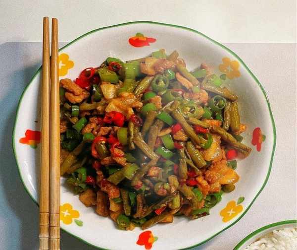酸豆炒肉是一道令人赏心悦目的特色菜。吃起来又酸又脆又开胃。和五花肉一起吃,可以满足全家人的胃口。吃了会上瘾。配米饭非常好。