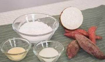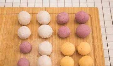 ①芋头、紫薯、地瓜用蒸烤箱蒸熟,去皮压碎