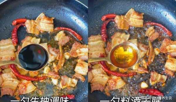 第六步:加一勺生抽调味,半勺老抽上色,加一勺蚝油提鲜,加一勺料酒去腥,快速入锅翻炒尽管。