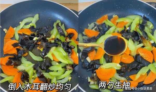 烹饪技巧:一定要选择西芹、胡萝卜和蘑菇。黑木耳一定要泡水焯一下。西芹胡萝卜和蘑菇的顺序比较难掌握。