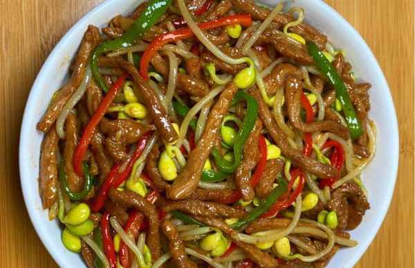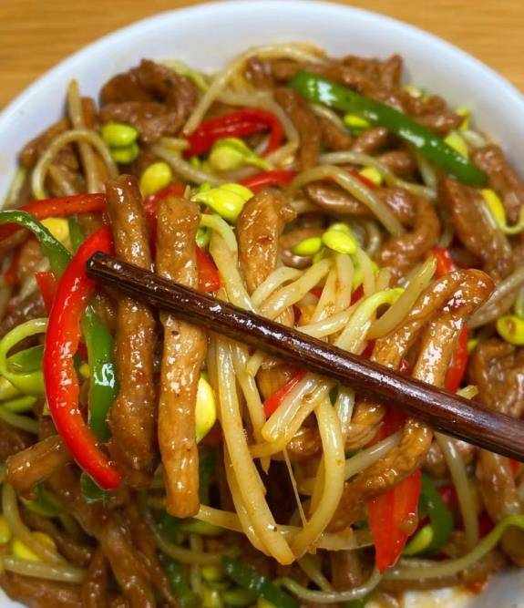 八月即将结束。九月中旬之后,我们将进入最凉爽的秋天。一些雨后,温度和湿度会下降,气候会出现“秋燥”,使人身体不适,食欲不振。很不好受,不知道吃什么,只能给家人做点菜。不知道吃什么的时候,老公就买些猪肉或者牛肉,配着小菜一起烤。菜品非常漂亮,吊足了我们一家人的胃口。今天要分享的是家常饭的快手菜——双椒豆芽炒手撕肉。很多人都是第一次吃这道双椒豆芽炒肉丝,赶紧学起来吧。现在是立秋,我家晚饭经常吃这道菜。它是荤素搭配,开胃且每餐都吃唯。