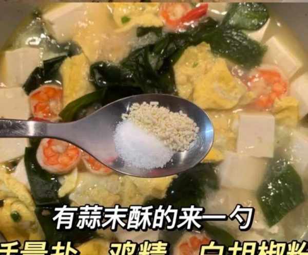 8:加入一些洋葱即可食用。这道裙带菜虾蛋豆腐汤就做好了。父母记得给孩子喝这汤。