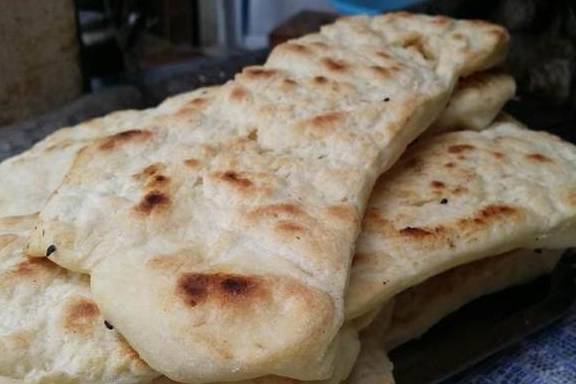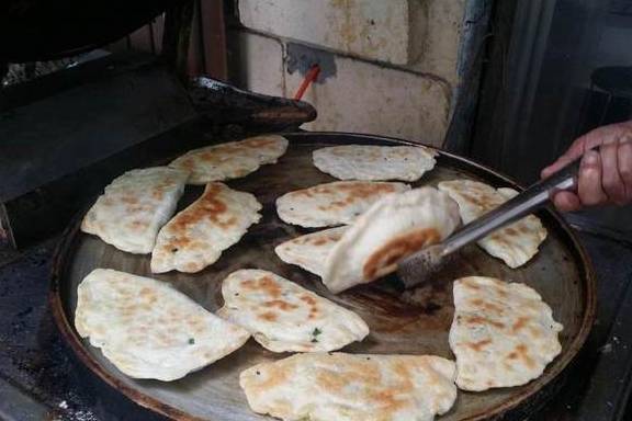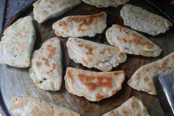 如果单单喝上一碗牛肉汤还不够填饱肚子的话,那么就得来上两块韭菜馅饼了,是不是像弯弯的月牙。