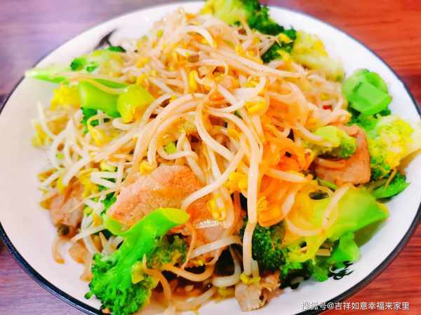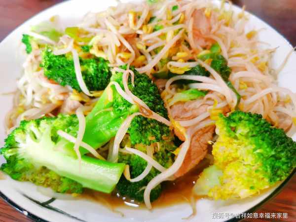 绿豆芽西兰花炒肉的主要食材包括:绿豆芽、西兰花、猪肉。