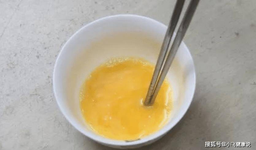 步骤2:将4个鸡蛋分别打入碗中。蛋液要先用力搅拌,然后加入少许冷煮白(冷煮白可以增加鸡蛋的新鲜度和蓬松度),加入白醋、盐和少许胡椒粉快速搅拌片刻。
