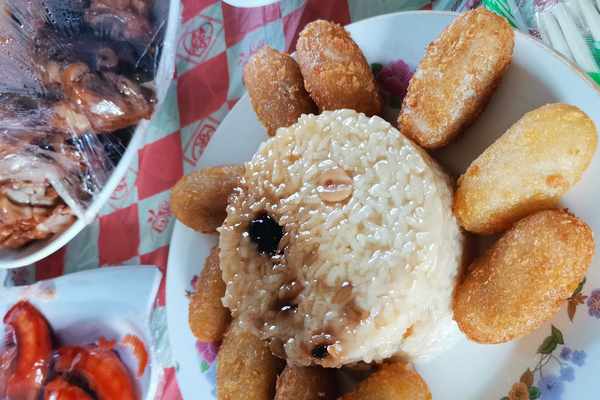 辦喜宴最離不開的一道菜就是蒸八寶飯,這也是一道甜品菜,小編知道,現在這道菜沒有現場做的,都是量販店或者批發來成品,用鐵罐裝著,放到蒸箱裏整熟後擺盤,跟廚師科技水准一點關係都沒有,不過這道菜軟軟糯糯,香香甜甜,小編很喜歡,跟小朋友一頓開搶!