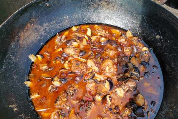 看這大鍋裏的小雞燉蘑菇,是不是非常的誘人呢?一燉就是一大鍋,熬制一個上午,雞肉非常入味,並與戶外空氣充分融合,肉香四溢,看得小編只想趕緊盛上一碗大米飯,澆上雞湯,美美地吃一頓!