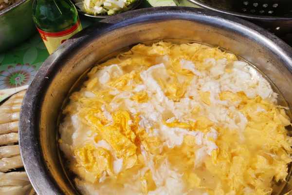 這一大盆雞蛋,紅白相間,是大廚們提前炒制好了的,可是令小編不解的是炒雞蛋泡在了水裏?為什麼把剛炒完的雞蛋泡在水裏呢?各位神通廣大的網友有知道的嗎?