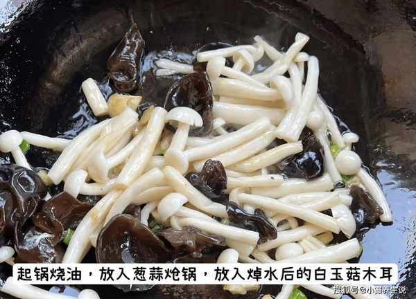 烹饪技巧:需要买新鲜的白玉菇、黑蘑菇和一些小菜。白玉菇要洗净烫一下。