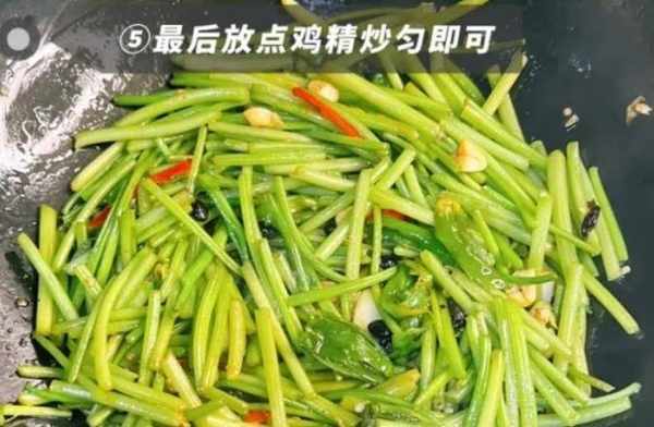 第五步:加入半勺鸡精,翻炒均匀出锅。这个炸红薯梗可以和辣椒一起吃。它具有独特的味道,非常适合作为配菜。