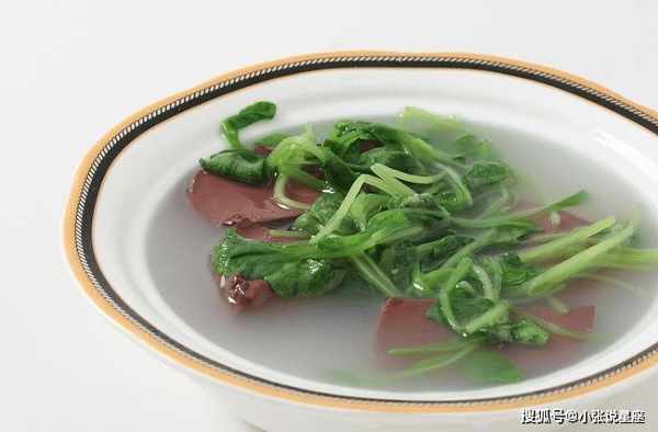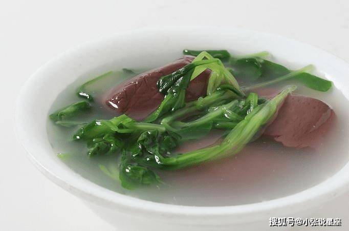 推荐:猪血不仅可以炒着吃,还可以用来煲汤。猪血中含有特别丰富的铁质和蛋白质,其中含铁量是猪肝的8倍。它是一种天然的补血品。经常食用可以起到调理气色、养血活血的作用,使脸色更加红润。另外,西洋菜是一种维生素A和维生素C含量特别高的食材,可以帮助清理肺部的毒素,还可以保护肝脏和肾脏的健康,对我们的身体健康大有裨益。