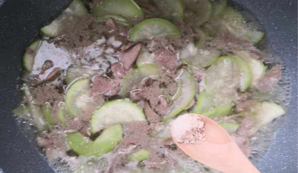 7:加入少许料酒和生抽,撒少许盐搅拌,最后加入白胡椒粉,撒少许小葱,这道汤很好吃,软嫩的猪肝汤就做好了。西葫芦猪肝汤是一道营养丰富的汤品。这汤的配方很简单。食材的选择非常重要。猪肝汤要不腥,猪肝的处理很重要。记得把猪肝倒过来切。猪肝片用冷水浸泡反复漂洗,需要料酒帮助去除鱼腥味,加入盐等香料腌制提味。西葫芦西葫芦汤需要肥油,加入姜和葱搅拌。热水烧开后,加入西葫芦,最后加入猪肉煮。最后,将汤调味并食用。